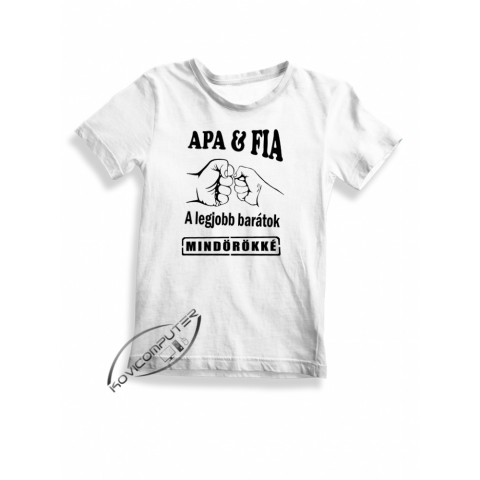 „Apa és fia – legjobb barátok” páros pólószett gyerek darabja, amely rendelhető önállóan is, vagy kiegészítőként a szetthez, ha több gyermek is része a családnak. A gyerek póló helyett választható fehér színű baba body is, így a legkisebbek számára is elé