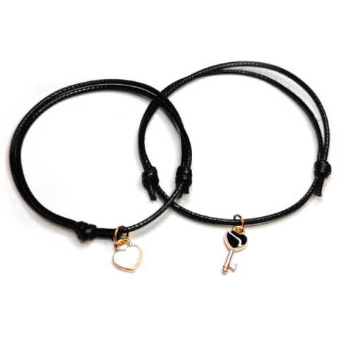 1 kép Páros zsinórszövet karkötő fehér szív és fekete kulcs charmmal