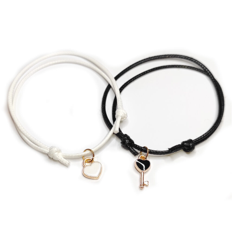 1 kép Páros zsinórszövet karkötő fehér szív és fekete kulcs charmmal II.