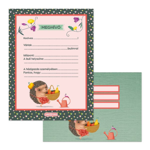Partimeghívó ARS UNA 10 ív+10 db boríték Apple Pie 10 db különböző alkalomra használható partimeghívó lap és 10 db C/6 méretű, hozzáillő mintájú boríték egy csomagban. 80 gr-os, szép fehér ofszet papírra, négy szín nyomással készült. Golyóstollal és fi