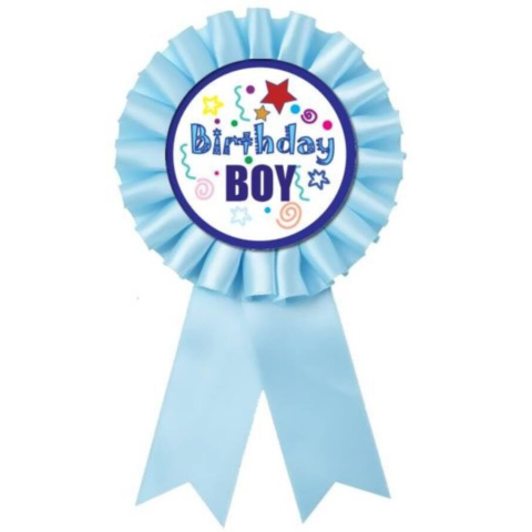 Kitűző, Birthday boy felirattal. Kék kivitelben.