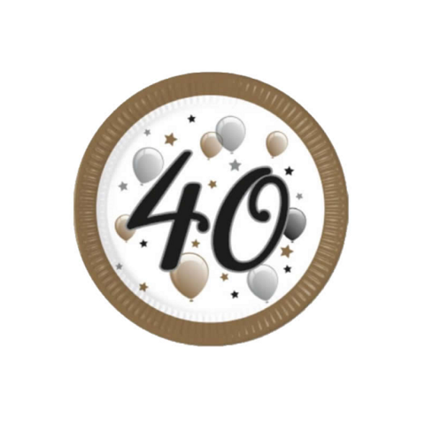 1 kép Party papírtányér 8db 23cm arany-ezüst 40. szülinapra