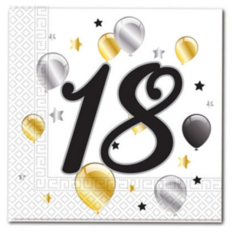 Party szalvéta 18. évszámos 20db-os kiszerelésben 33x33cm