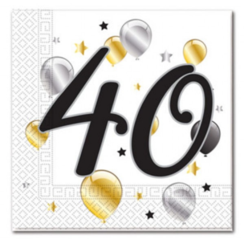 Party szalvéta 40. évszámos 20db-os kiszerelésben 33x33cm