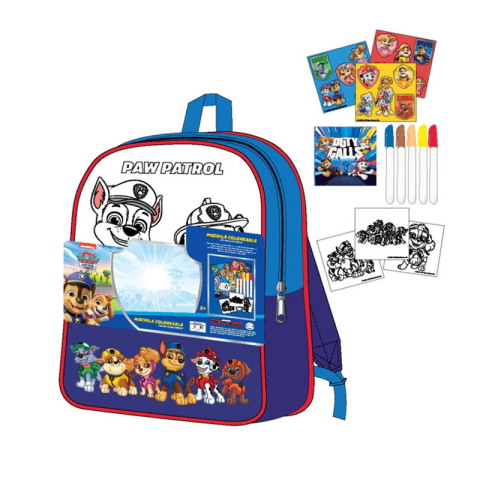 PAW PATROL színezhető iskolatáska 2700001822 Engedd szabadjára gyermeked kreativitását ezzel a fantasztikus Paw Patrol témájú hátizsák szettel! A hátizsák eleje kiszínezhető, így a gyerekek saját ízlésük szerint dekorálhatják kedvenc karaktereikkel díszített táskát.A szett tartalma:1 db Paw Patrol hátizsák4 db színes filctoll (narancssárga, barna, rózsaszín, lila)4 db matricalap Paw Patrol témábanTermékjellemzők:Mérete: 3,0 x 38,0 x 31,0 cmAnyaga: 100% polié