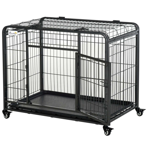 1 kép PawHut Kutyaketrec, Összecsukható, Fém, 109,5 x 71 x 78 cm, Sötétszürke