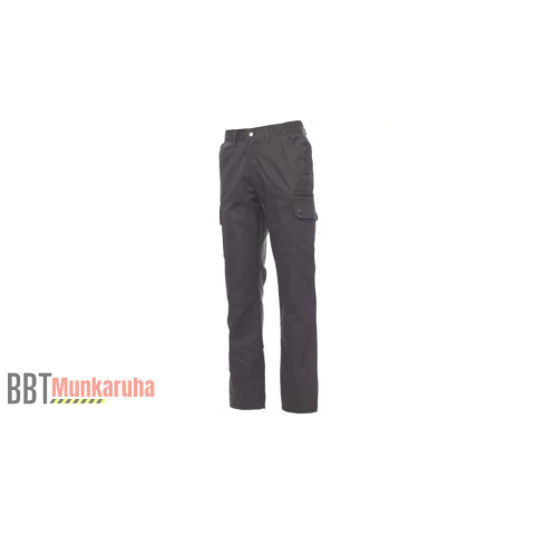 Poliészter flanel bélés (110 g/m2) Oldalt gumírozott derék, övtartó Fém gomb, cipzárral Klasszikus első zsebek Füles, patentos oldalzsebek Bal oldalt cipzáras oldalzseb Jobb oldalon mérőszalagtartó zseb Gombos farzsebek 100 % pamut, 280 g/m2 Méret: XS-5