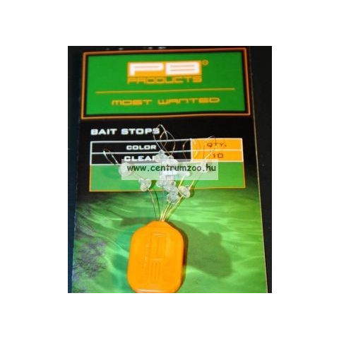 Csali stopper A PB Products Bait Stops puha,szilikonból készült stopper. A hajszálelőkére felhúzva megakadályozhatjuk, hogy a két szem bojli csalizásakor a felső bojli a horoghoz felcsússzon. Kiszerelés:10db/csomag