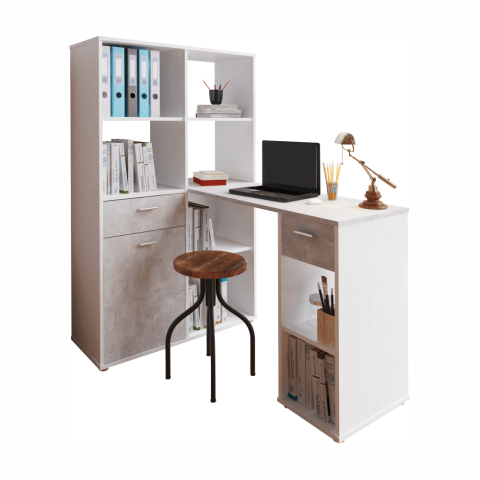 1 kép PC asztal könyvespolccal, fehér/beton, MINESON