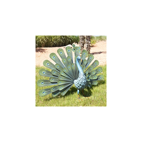 - Peacock páva figura, legyezőszerű tollakkal, fém, zöld kerti dekoráció árgrafikon
