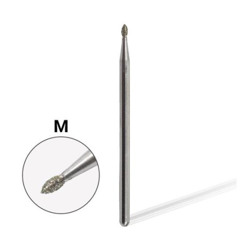 Közepes finomságú, mini csepp alakú gyémánt csiszolófej gépi manikűrözéshez. Mérete: ø1,2mm