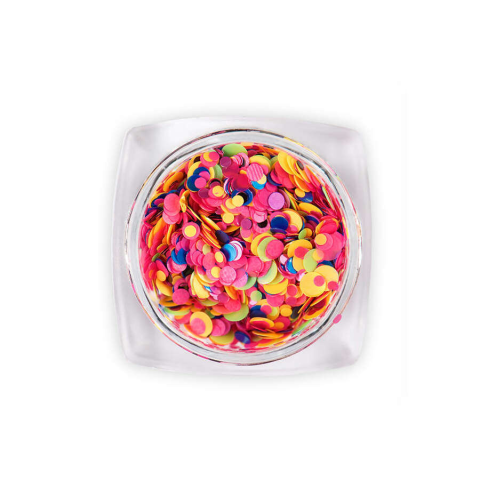 Körömdíszítő konfettik Különböző méretű, vidám és élénk színű körömdíszítő konfettik a gyors, egyszerű és mutatós díszítésekhez. Használata: Ragacsos rétegbe (zselébe vagy gél lakkba) rakjuk a konfettiket, majd köttessük meg őket UV/LED lámpában. Kötés után két réteg fényzselével zárjuk a körmöt.