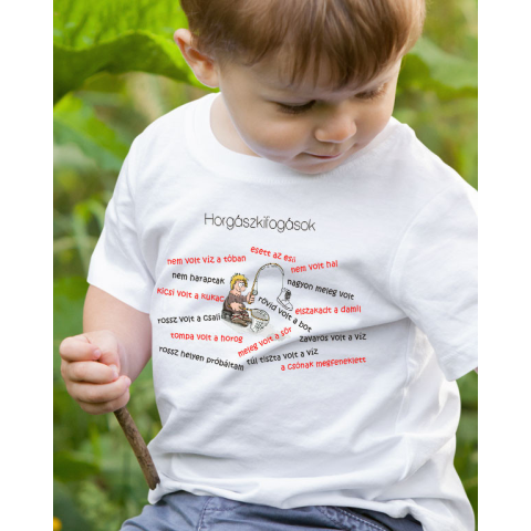 Pecás ajándék, horgászkifogások gyerek póló. Ha Neked is van olyan kisgyerek ismerősöd aki imádja a horgászkifogásokat akkor lepd meg őt egy vicces horgász gyerek pólóval. 100% pamut, többféle szín és fazonban rendelhető. Minőségi gyerek pólóink ideál