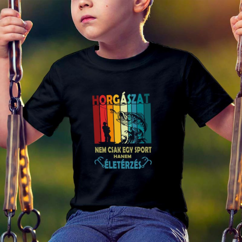 Gyerek póló pecásoknak, horgász életérzés. A horgászat nem csak egy sport, hanem életérzés feliratos gyerek póló, amit csak egy igazi megszállott horgász viselhet magán. Ajándék a legnagyobb horgásznak, akit ismersz, akinek kedvenc időtöltése a pecázás.