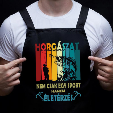 Kötény pecásoknak, horgász életérzés. A horgászat nem csak egy sport, hanem életérzés feliratos kötény, amit csak egy igazi megszállott horgász viselhet magán. Ajándék a legnagyobb horgásznak, akit ismersz, akinek kedvenc időtöltése a pecázás. Fehér és f