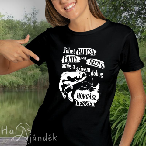 Női póló pecásoknak, amíg a szívem dobog horgász leszek. Jöhet harcsa, ponty vagy keszeg, amíg a szívem dobog horgász leszek női póló legnépszerűbb mintáink egyikével, ami eddig minden horgász tetszését elnyerte. Ha ajándékot keresel horgász anyukádnak, b