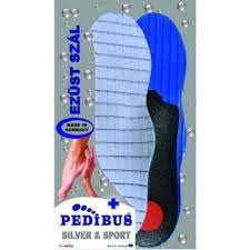 Pedibus 4000 ezüstszálas talpbetét (Silver and sport) Pedibus 4000 ezüstszálas talpbetét Ezüst szállal szőtt frottír felsőrésze semlegesíti a baktériumok kialakulását és a nyirkosságot. Az aktívszenes alsórészén harántemelés, lúdtalpemelés, és az ízül