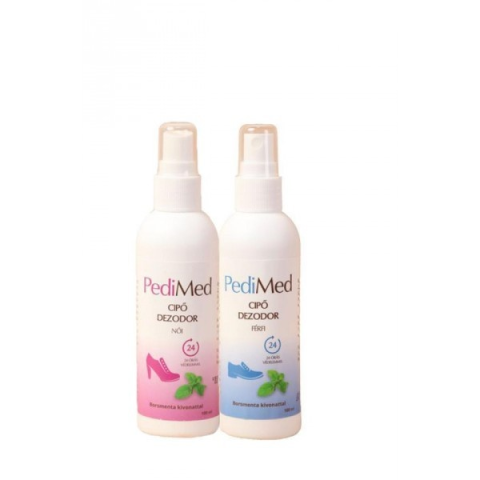 Természetes, különleges hatóanyagai gátolják a túlzott izzadást, megszüntetik a kellemetlen lábszagot. 100 ml-es spray; Pedimed termék a kellemetlen lábszag megszüntetéséhez.