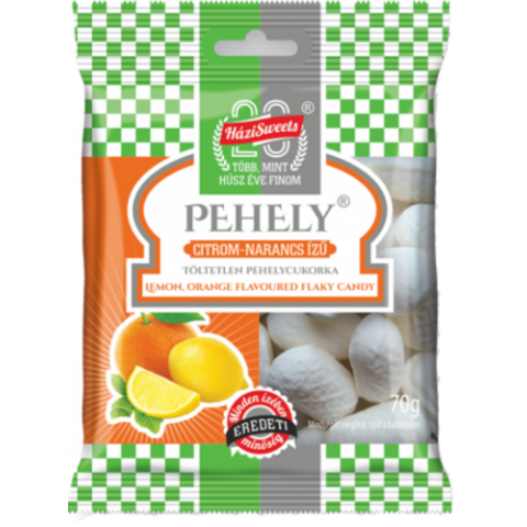 Citromos és narancsos ízű töltetlen pehelycukor.Súly: 70g