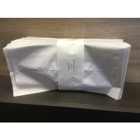 A pékáru tasak 17×35 cm – 1,5 kg kivitelben elegáns megoldás élelmiszerek, főleg pékáruk csomagolására. A pékáru tasak alapanyaga papír, színe fehér, mérete 17x35 cm, vagyis akár nagyobb pékáruk, kenyerek, kiflik, bagettek csomagolásaként is alkalmazhatóak. Miivel papírtasakról van szó, környezetbarátabb megoldást jelent, mint a nejlonzacskó. A pékáru tasak 17×35 cm – 1,5 kg kiszerelése 250 db-os csomagokban kapható webáruházunkban, de készletről nagyob