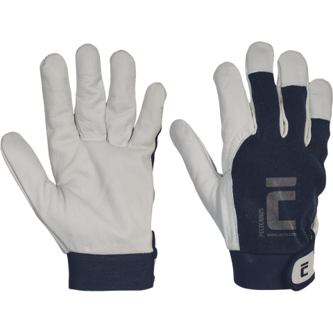 PELECANUS kesztyű - 7 • varrott védőkesztyű finom kecskebőr tenyérrel, pamut szövet kézfejjel • bőr körmvédő • rugalmas, tépőzáras mandzsetta