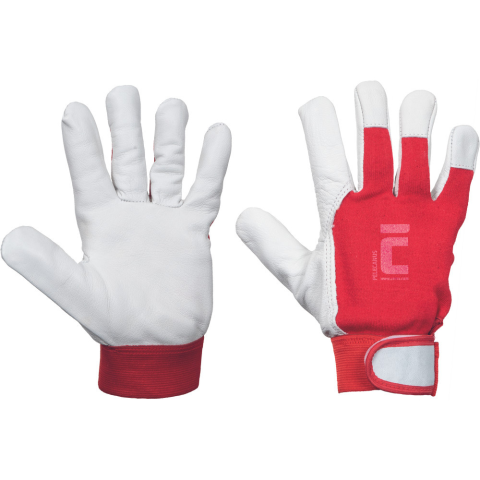 PELECANUS kesztyű piros 8 • varrott védőkesztyű finom kecskebőr tenyérrel, pamut szövet kézfejjel • bőr körmvédő • rugalmas, tépőzáras mandzsetta