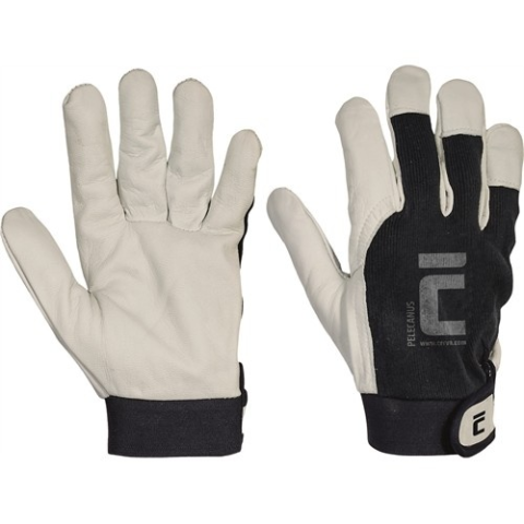 Varrott védőkesztyű finom kecskebőr tenyérrel, pamut szövet kézháttal.Köröm felett bőr takarás. Rugalmas, tépőzáras mandzsetta.EN388 2121x