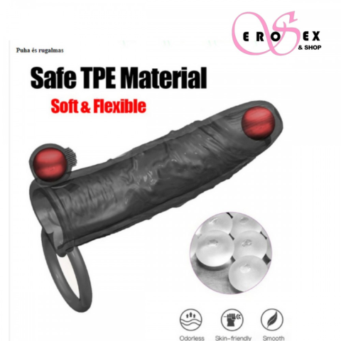 Ez egy többfunkciós termék: Pénisznagyobbító-vastagító köpeny dupla vibrátoros golyó heregyűrű 10 vibrátoros funkció Funkciók: Ezzel a köpennyel megnöveljük a pénisz vastagságát és hosszát. Dupla vibrátoros golyóval lett ellátva. A 10 különböző rezg