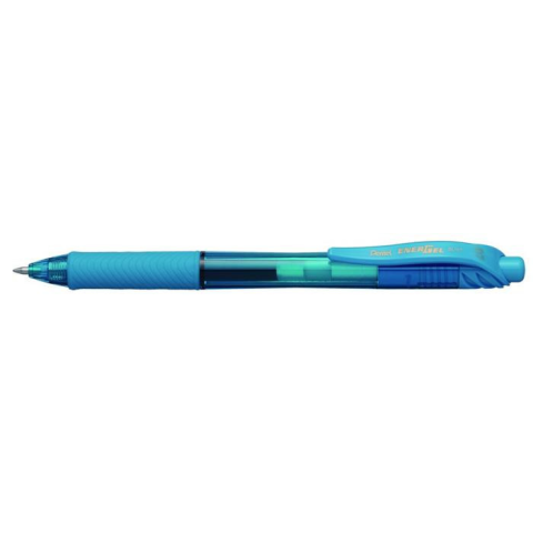 Zseléstoll, 0,35 mm, nyomógombos, PENTEL EnerGelX BL107, világoskék Vidám színekkel öröm az írás! -a tinta színével megegyező gumírozott fogórész -szuper lágy és azonnal száradó tinta -vékony, stílusos test és klip -a bordázott, gumis fogórész kényelm