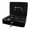 Q-CONNECT Festett, karcolásálló acélból készült pénzkazetta fedélbe süllyesztett fém fogantyúval, műanyag pénzérme tartóval. Biztonsági zár 2 kulccsal.