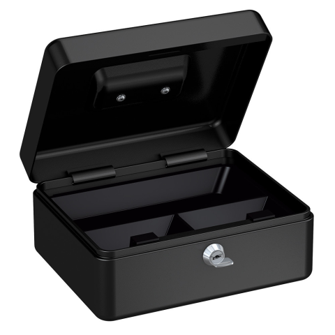 pénzkazetta érmetartóval •acéllemez pénzkazetta•süllyesztett fém fogantyú•3 rekeszes műanyag aprópénztartó•alatta hely bankjegyeknek•krómozott lamellás zár•kettő darab kulccsal•többféle méretben és színben áruljuk