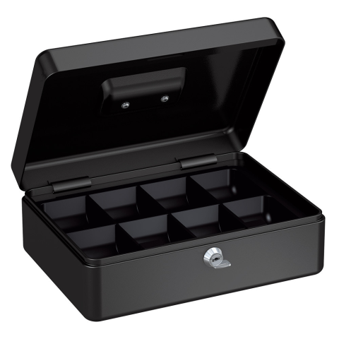 pénzkazetta érmetartóval •acéllemez pénzkazetta•süllyesztett fém fogantyú•8 rekeszes műanyag aprópénztartó•alatta hely bankjegyeknek•krómozott lamellás zár•kettő darab kulccsal•többféle méretben és színben áruljuk