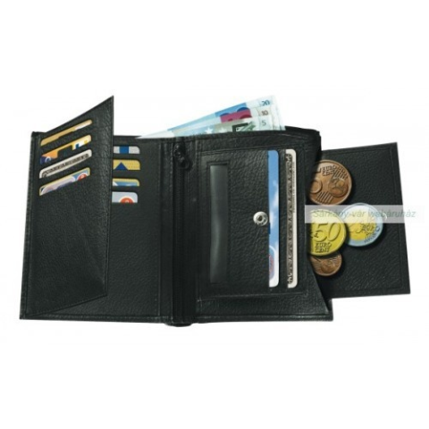 Pénztárca valódi bőrből, különböző zsebekkel, patentos aprópénz tartóval Mérete:11.8 x 9.2 x 1.5 cm Rendelésre: 5-10 nap! Szín: fekete Méret: 11,8 x 9,2 x 1,5 cm Nettó súly (kg): 0,099 Bruttó súly (kg): 0,17 Anyag: Bőr