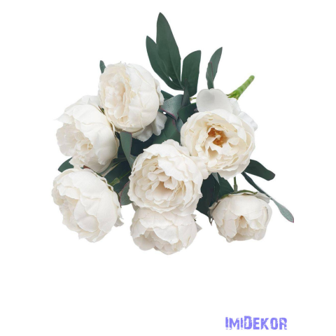 Peónia 10 fejes selyemvirág csokor 43cm - Fehér dekorációs kellék 1 kép