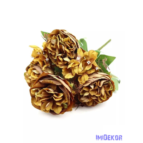 1 kép Peónia 4 fejes csokor hortenziával 37 cm - Sárgás Barna