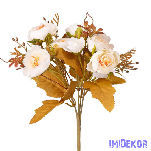 Peónia 5 ágú selyemvirág csokor 28cm - Fehér dekorációs kellék 1 kép