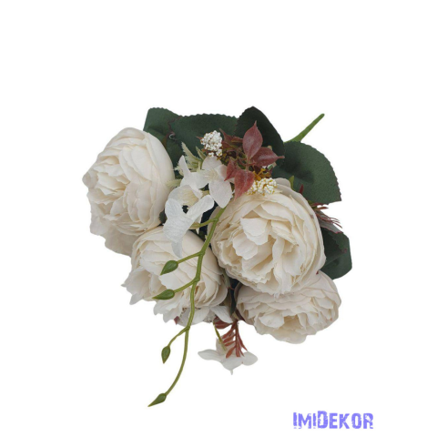 Peónia 5 fejes selyemvirág csokor 39cm - Fehér dekorációs kellék 1 kép