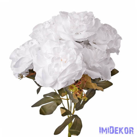 Peónia 7 ágú selyemvirág csokor 38cm - Fehér dekorációs kellék 1 kép