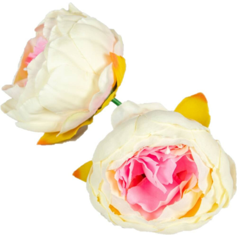 1 kép Peónia fej selyemvirág fejvirág 8 cm - Krém-Rózsaszín középpel