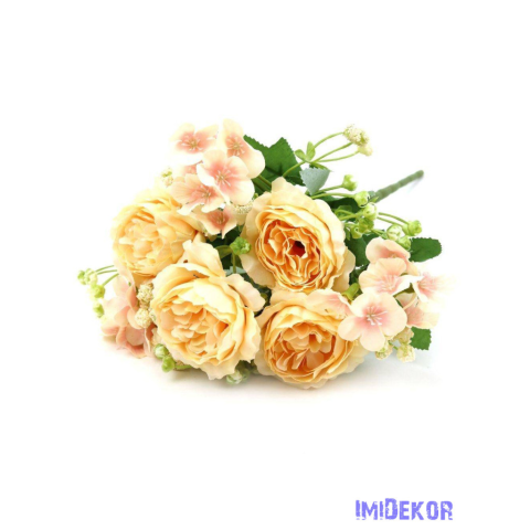 Peónia + kis virág selyem csokor 31cm - Barack