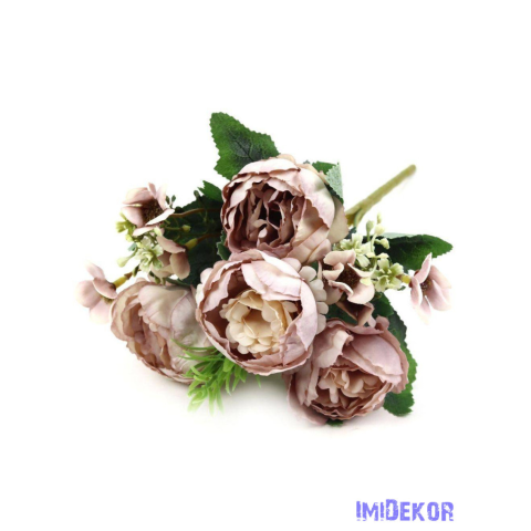 Peónia selyem csokor apró virággal 30 cm - Púder dekorációs kellék 1 kép