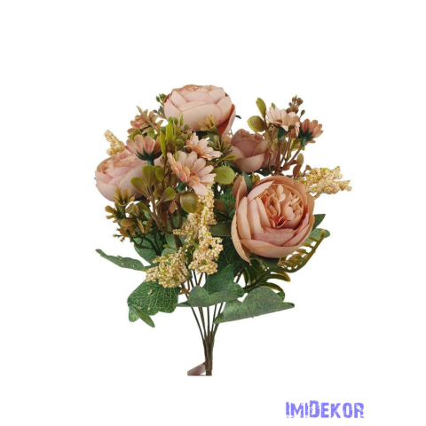 Peónia selyemvirág csokor kiegészítőkkel 35cm - Antik Barack dekorációs kellék 1 kép