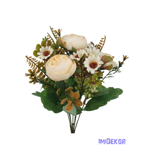 Peónia selyemvirág csokor kiegészítőkkel 35cm - Krém