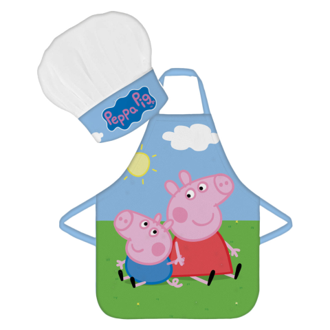 Peppa Pig, Peppa malac Field Gyerek kötény 2 darabos szettAnyaga: 100% poliészterSzett tartalma:- 1 db kötény- 1 db kuktasapkaAjánlott 3-8 éves korig.Csomagolt termék, ajándéknak is kitűnő.