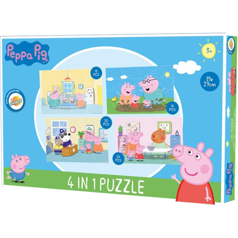 Peppa Pig, Peppa malac puzzle 4 az 1-benAjánlott 3 éves kortól.Mérete: 19x29 cmTartalma:- 1 db 12 db-os puzzle- 1 db 16 db-os puzzle- 1 db 20 db-os puzzle- 1 db 24 db-os puzzle