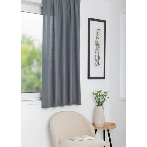 Percy/04, szürke színű, minta nélküli dekor készfüggöny, ráncolószalaggal. Mérete 140 cm x 175 cm. Alapanyaga 100 % pamut.