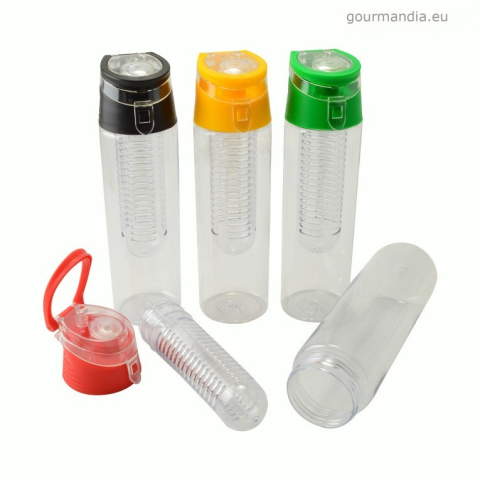 Perfect Home kulacs gyümölcstartóval Szín: sárga Anyaga: műanyag, szilikon Mérete: alsó átmérő: 7 cm, magasság: 24,5 cm Doboz mérete: 25,7 x 7,7 x 7,7 cm Űrtartalom: 700 ml Bruttó súly: 203 g Nettó súly: 153 g Ajánljuk: sportoláshoz, kiránduláshoz, tú
