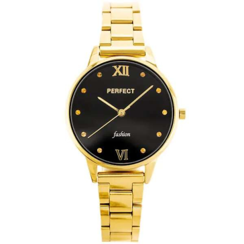Teljes Perfect női arany kvarcóra fekete számlappal + díszdoboz termékleírás