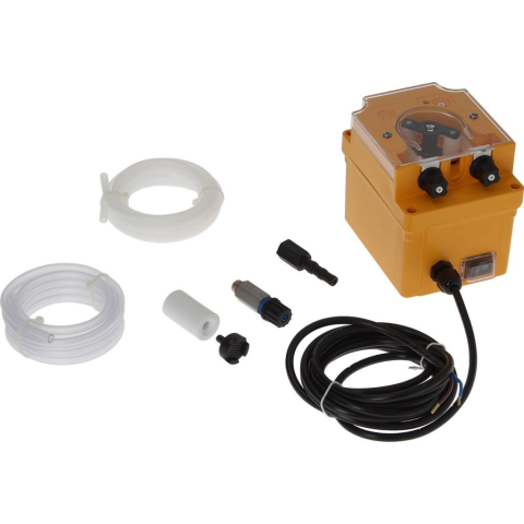 230V - 50/60Hz - IP65 | max. nyomás 400 Kpa (4bar-58 psi) | állítható áramlási sebesség 0-tól 1.2 L/óra | BE-KI kapcsoló | ez a KÉSZLET MOSOGATÓGÉPEKHEZ tartalmazza: lábszűrő | bemeneti csatlakozó tartályhoz átmérő 4x6 mm konzol | visszacsapó szelep | PVC