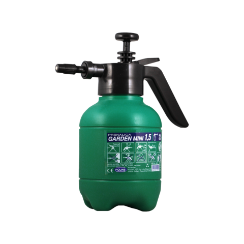 Garden mini kézi permetező, űrtartalma: 1,5 liter. A permetező elengedhetetlen kellék minden gondos kert és dísznövény tulajdonos számára. A kézi permetezőt kizárólag vízben oldódó anyagokkal lehet használni. Nedvesítésre, gyomirtásra, növényvédőszerek kijuttatására, növények táplálása növénytápláló szerekkel. A kézi permetező állítható fúvókája műanyagból készült